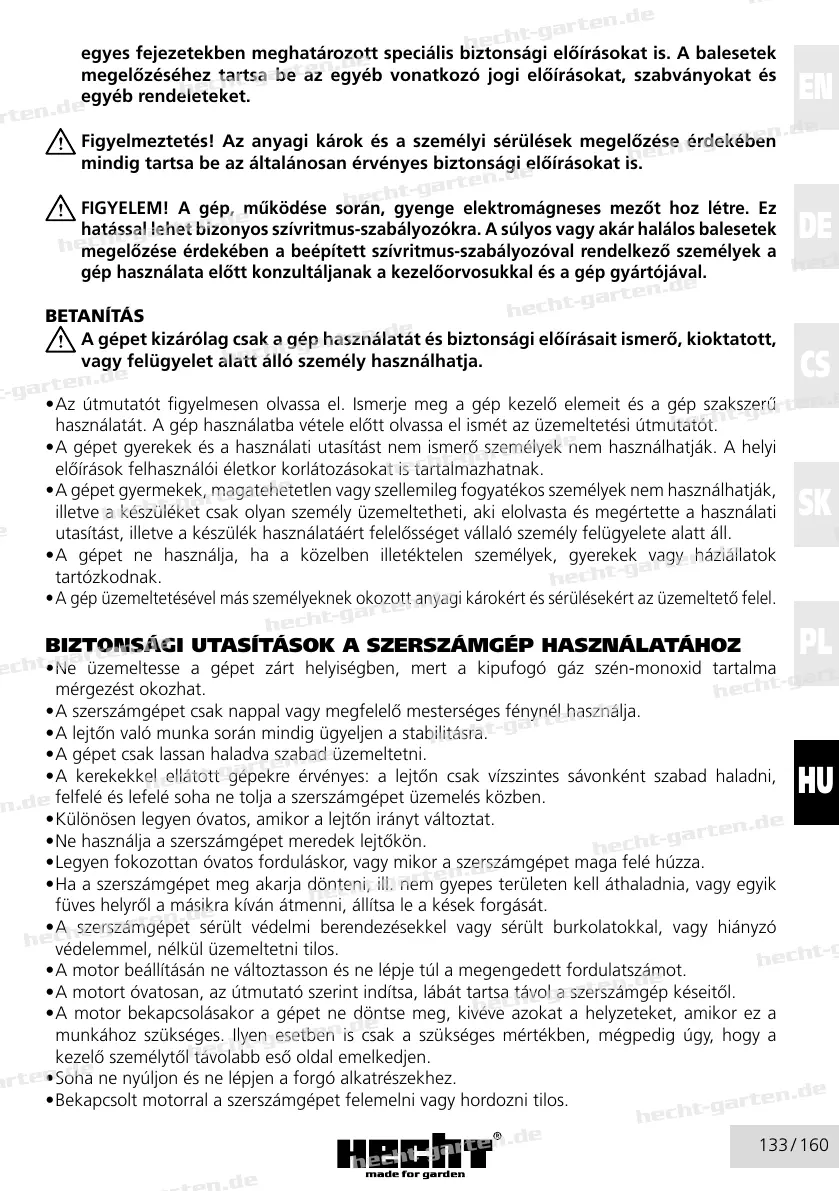 • A gép üzemeltetésével más személyeknek okozott anyagi károkért és sérülésekért az üzemeltető felel.