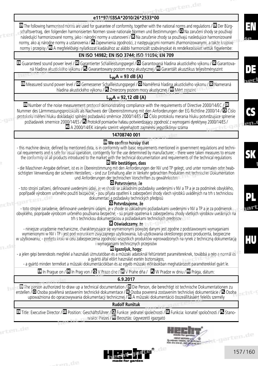 f Guaranteed sound power level / d Garantierter Schallleistungspegel / b Garantovaná hladina akustického výkonu / l Garantova-