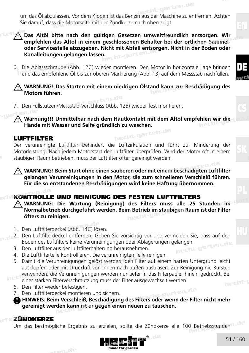 und das empfohlene Öl bis zur oberen Markierung (Abb. 13) auf dem Messstab nachfüllen.