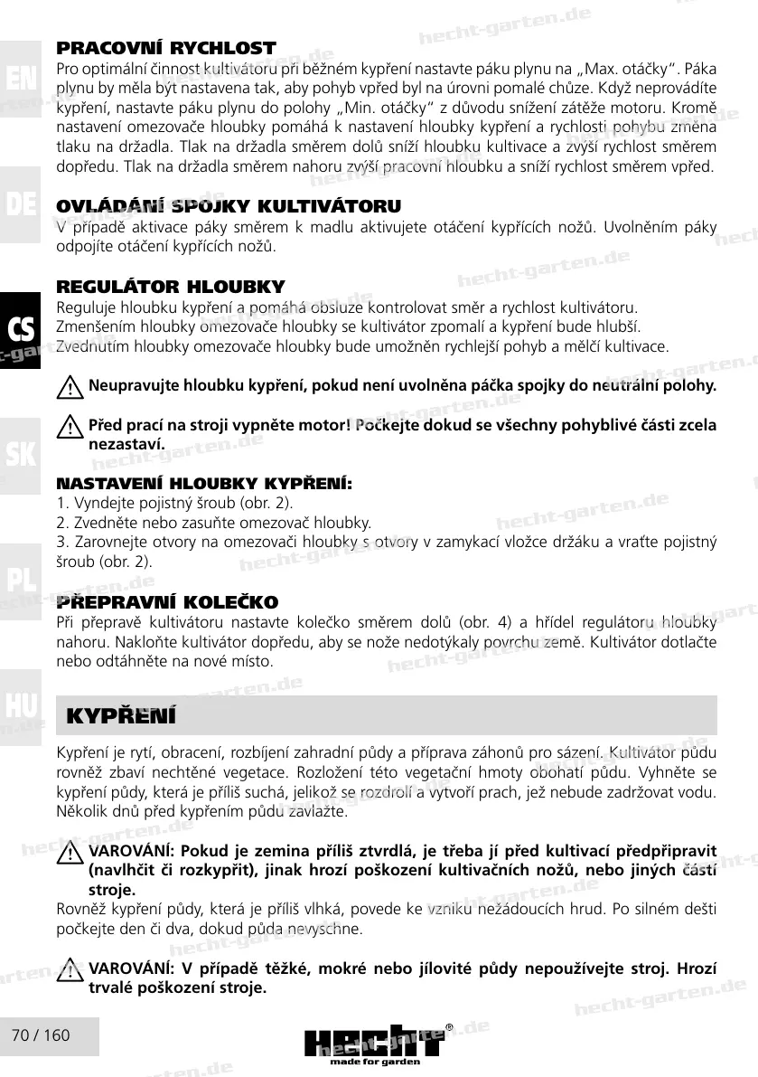 VAROVÁNÍ: V případě těžké, mokré nebo jílovité půdy nepoužívejte stroj. Hrozí