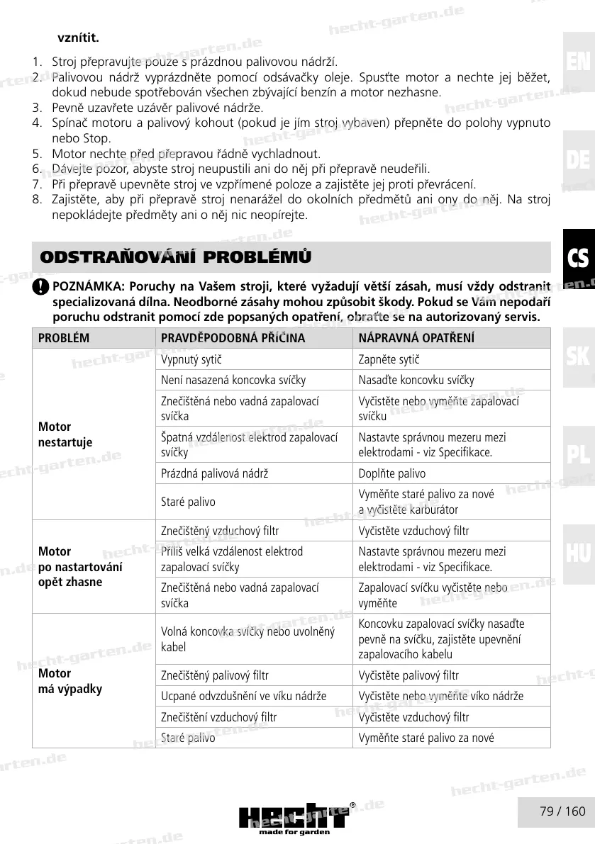 1. Stroj přepravujte pouze s prázdnou palivovou nádrží.