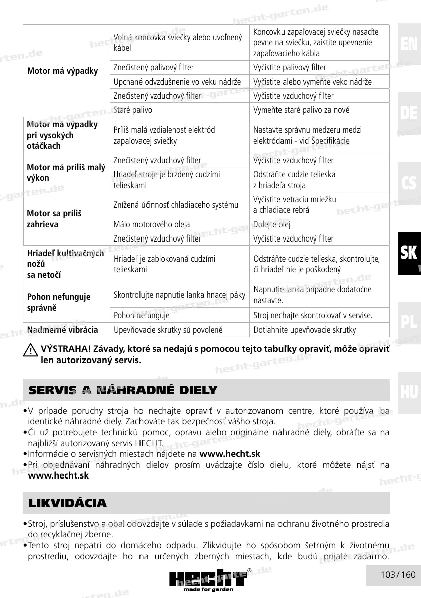 • Informácie o servisných miestach nájdete na www.hecht.sk