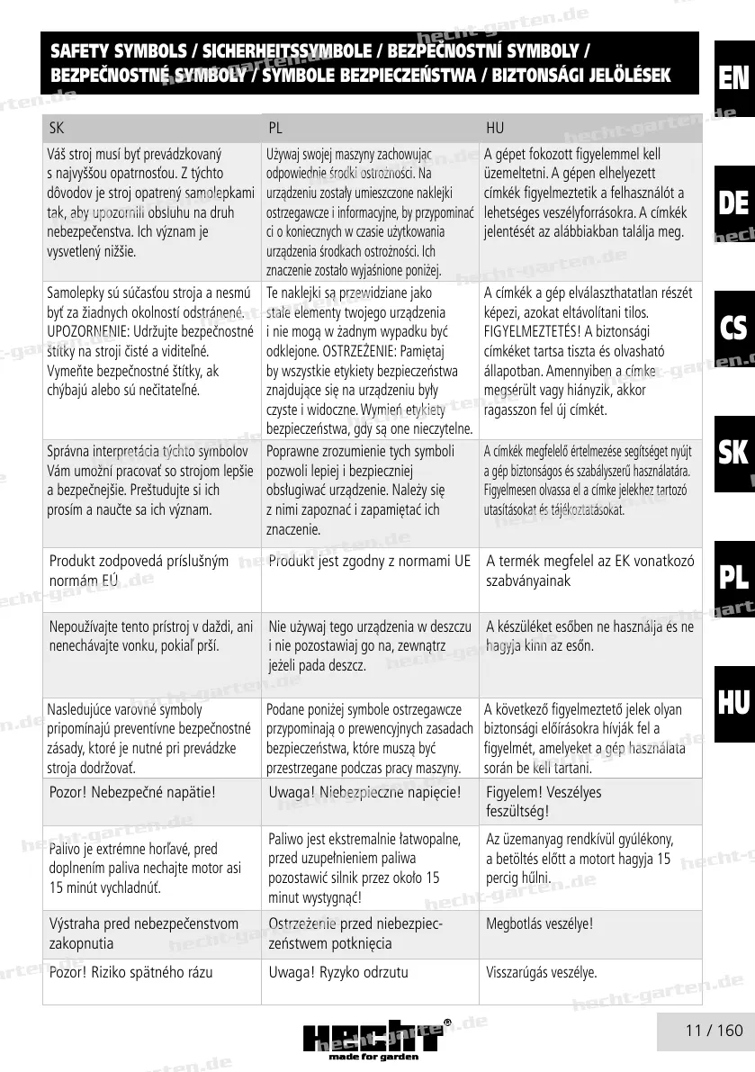 SAFETY SYMBOLS / SICHERHEITSSYMBOLE / BEZPEČNOSTNÍ SYMBOLY /