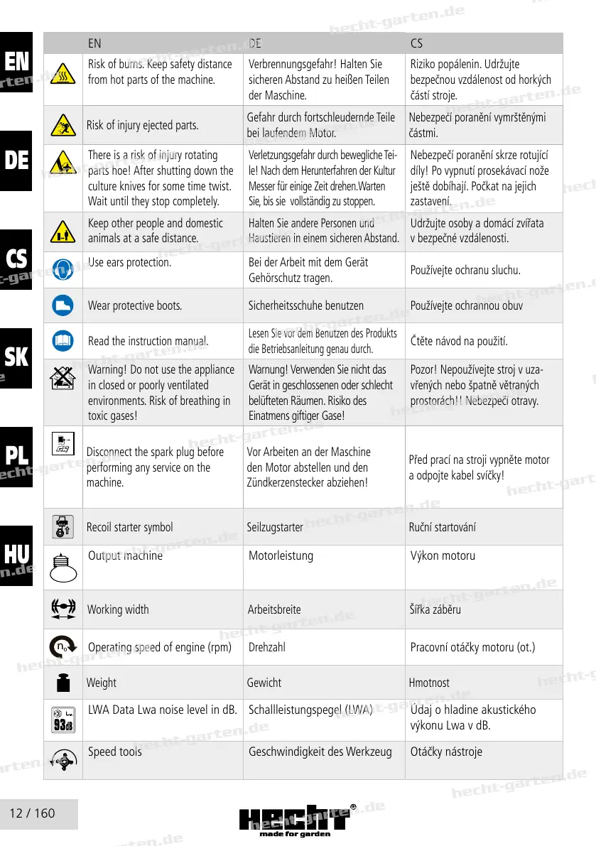 Working width Arbeitsbreite Šířka záběru Šírka záberu Szerokość zasięgu Nyírási szélesség