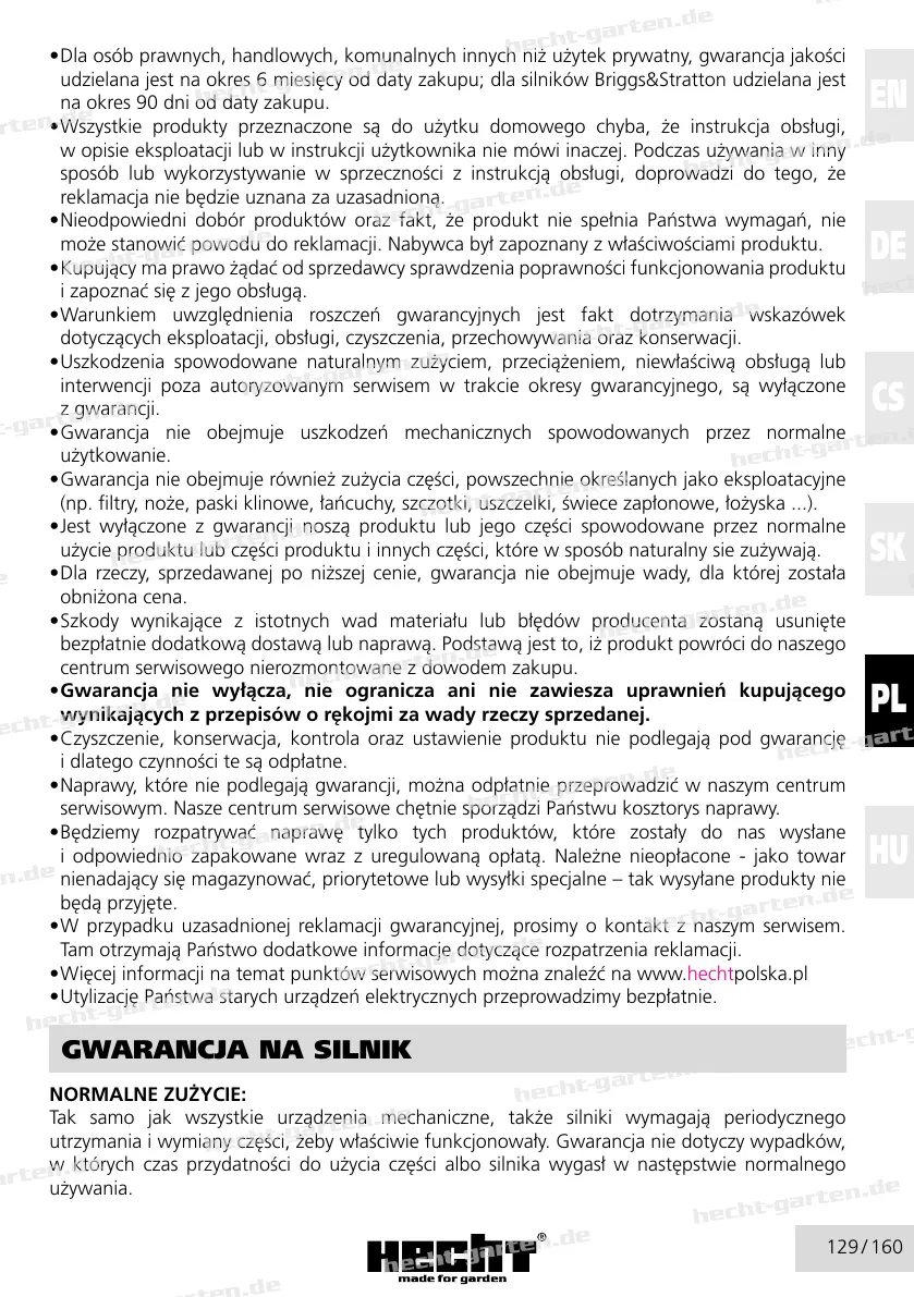 • Więcej informacji na temat punktów serwisowych można znaleźć na www.hechtpolska.pl