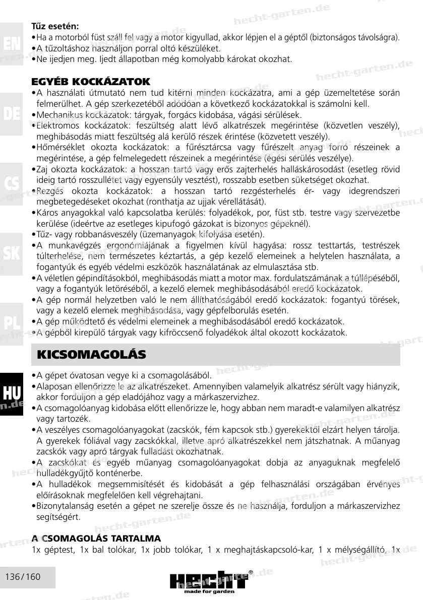 • A gép normál helyzetben való le nem állíthatóságából eredő kockázatok: fogantyú törések,