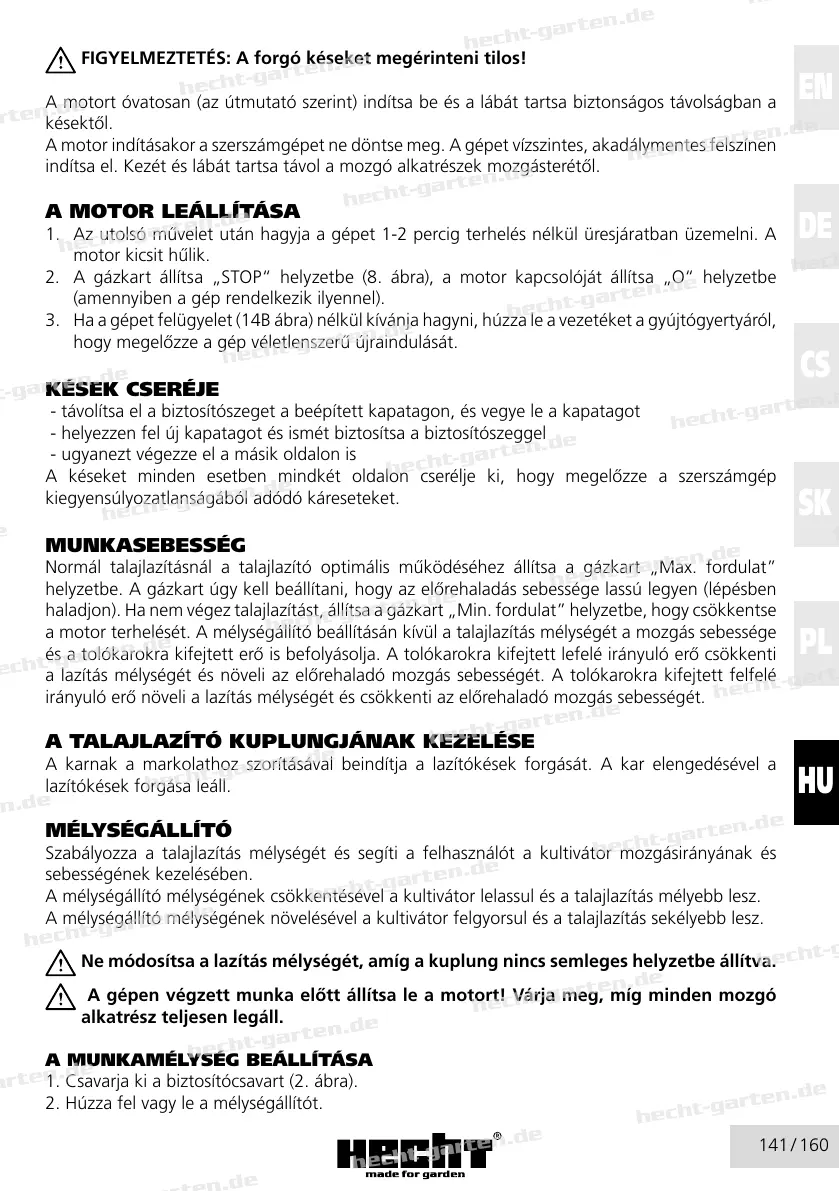 a motor terhelését. A mélységállító beállításán kívül a talajlazítás mélységét a mozgás sebessége