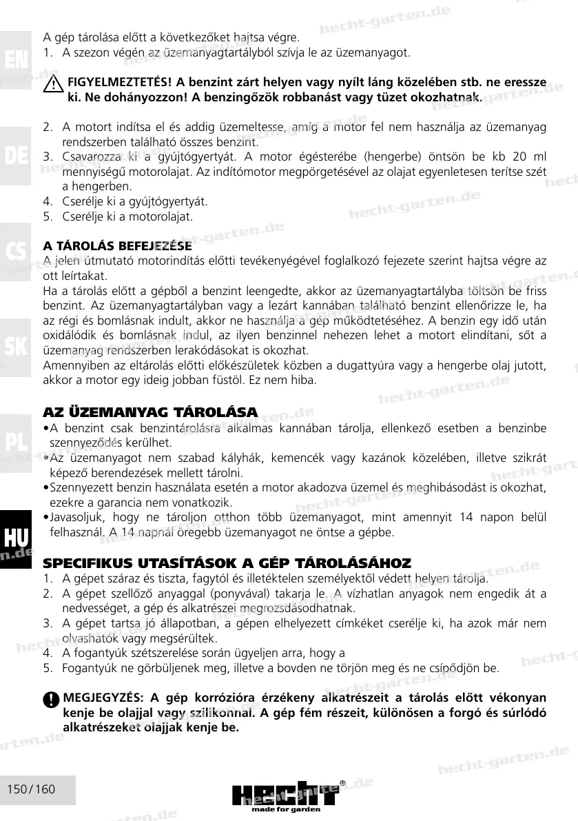 • Javasoljuk, hogy ne tároljon otthon több üzemanyagot, mint amennyit 14 napon belül