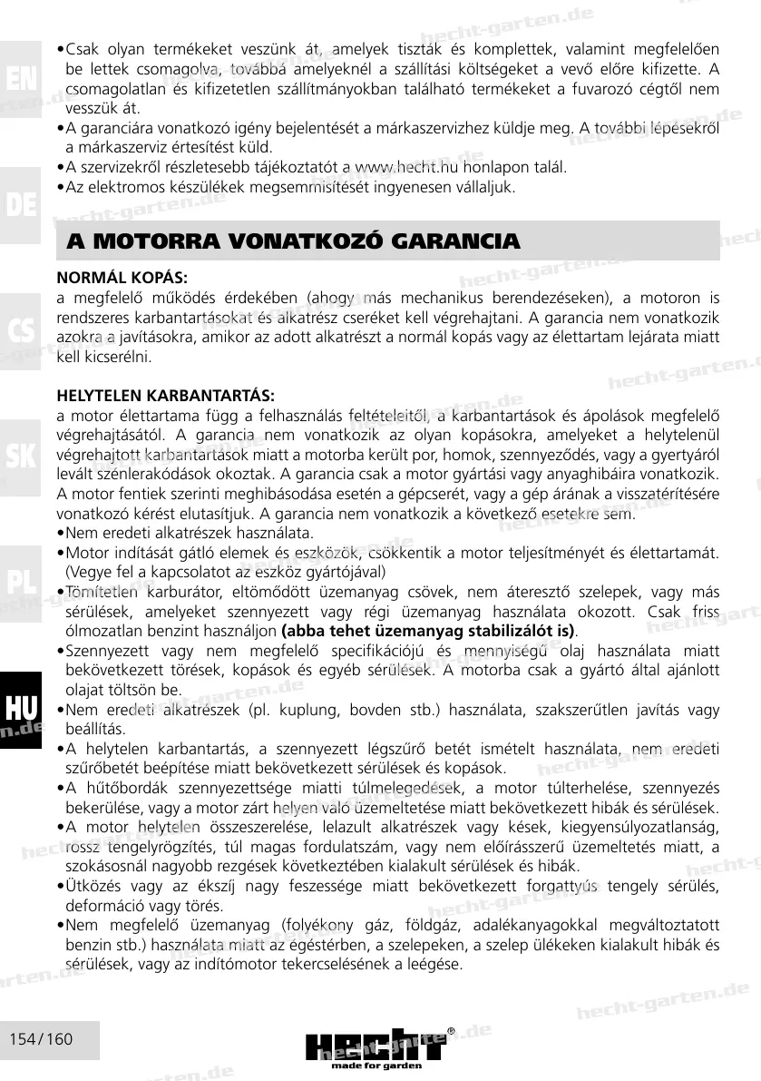 • A szervizekről részletesebb tájékoztatót a www.hecht.hu honlapon talál.