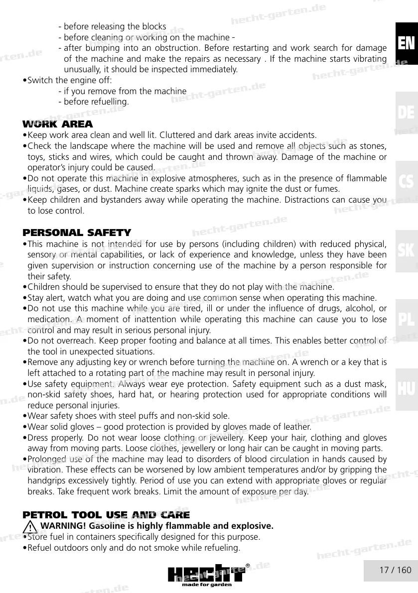 • Check the landscape where the machine will be used and remove all objects such as stones,