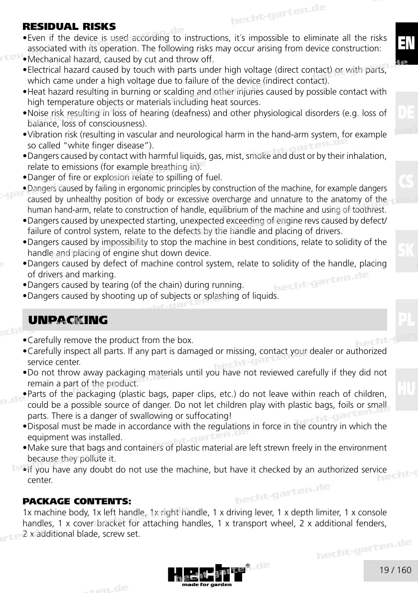 • Mechanical hazard, caused by cut and throw off.