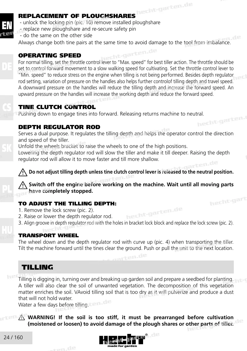“Min. speed” to reduce stress on the engine when tilling is not being performed. Besides depth regulator