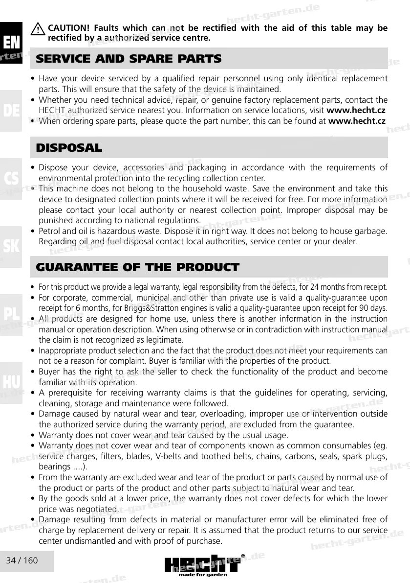 HECHT authorized service nearest you. Information on service locations, visit www.hecht.cz