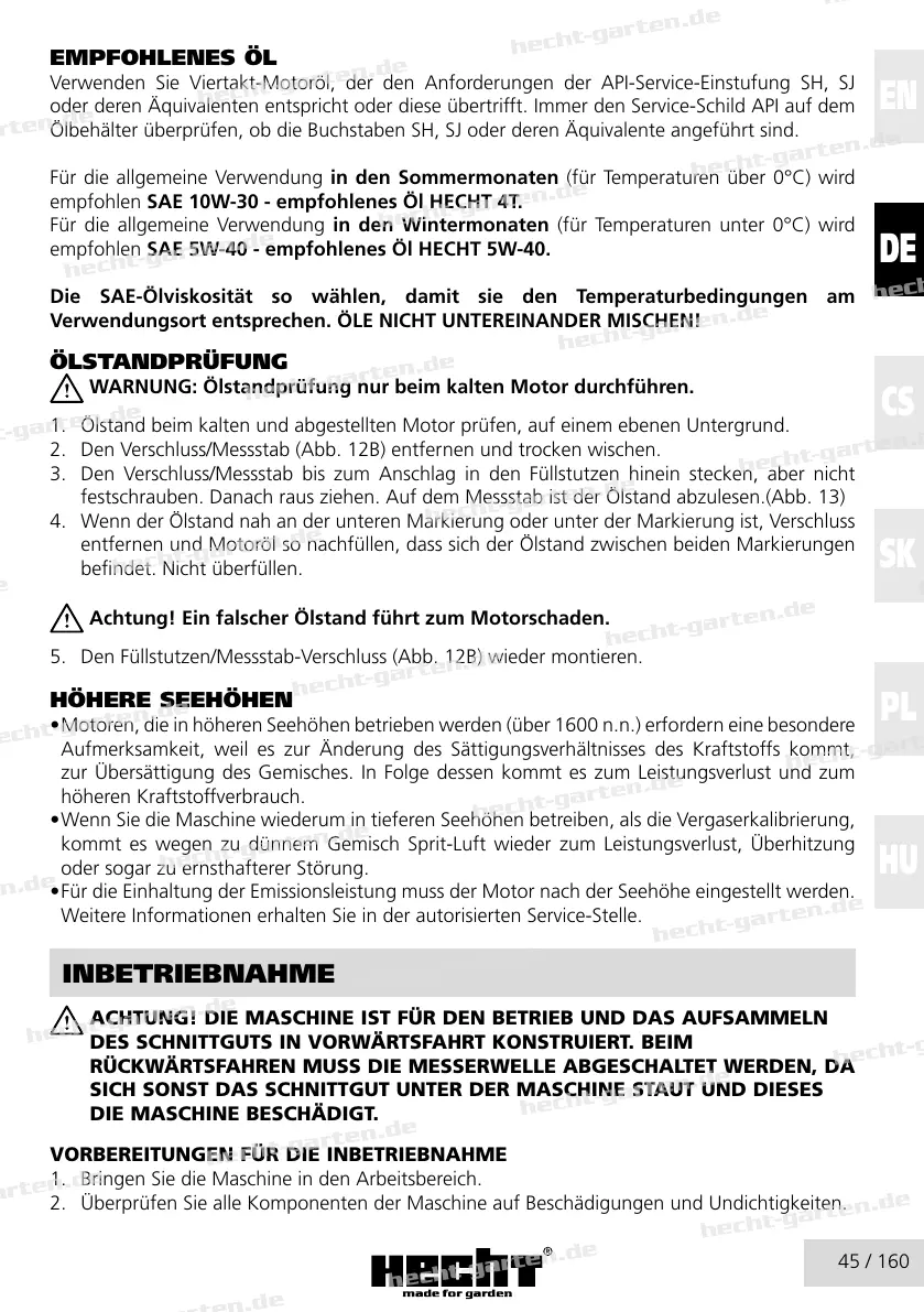 empfohlen SAE 10W-30 - empfohlenes Öl HECHT 4T.