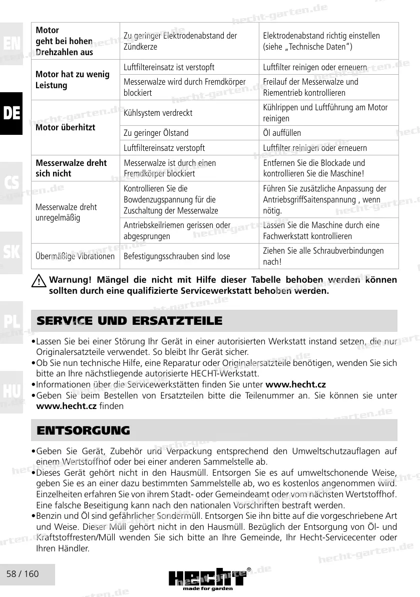 • Informationen über die Servicewerkstätten finden Sie unter www.hecht.cz