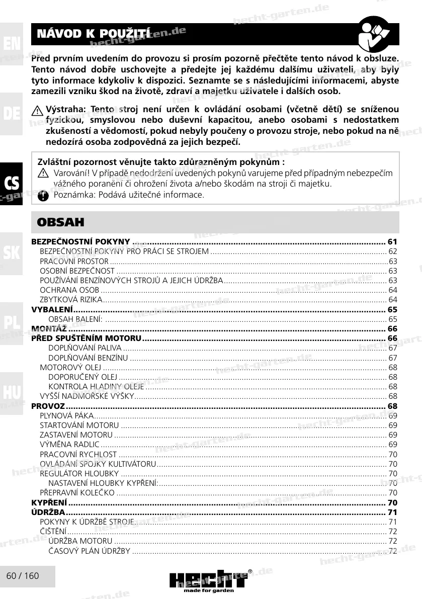 BEZPEČNOSTNÍ POKYNY ....................................................................................................... 61