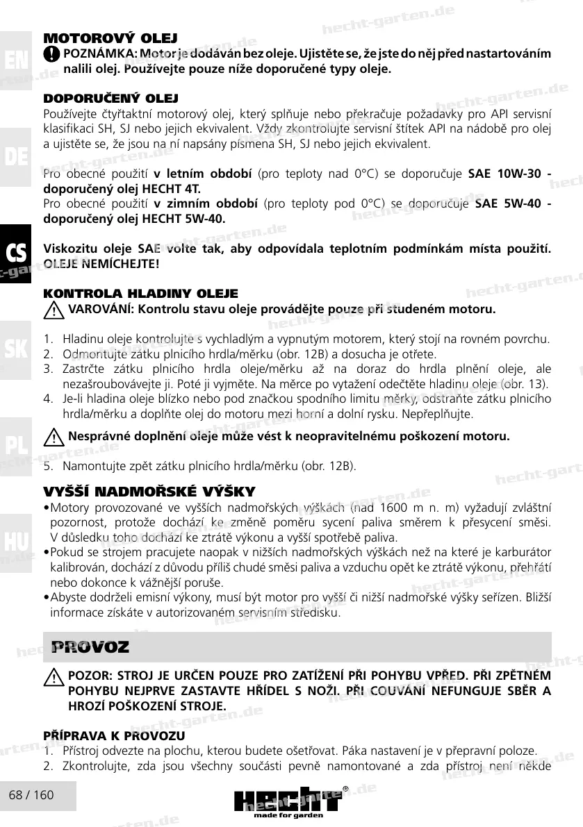 doporučený olej HECHT 4T.
