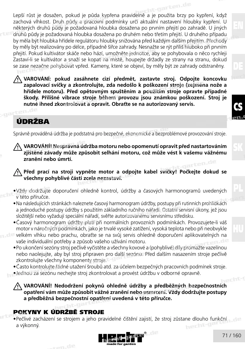 • Jednou za sezónu nechejte stroj zkontrolovat a provést údržbu v odborné opravně.
