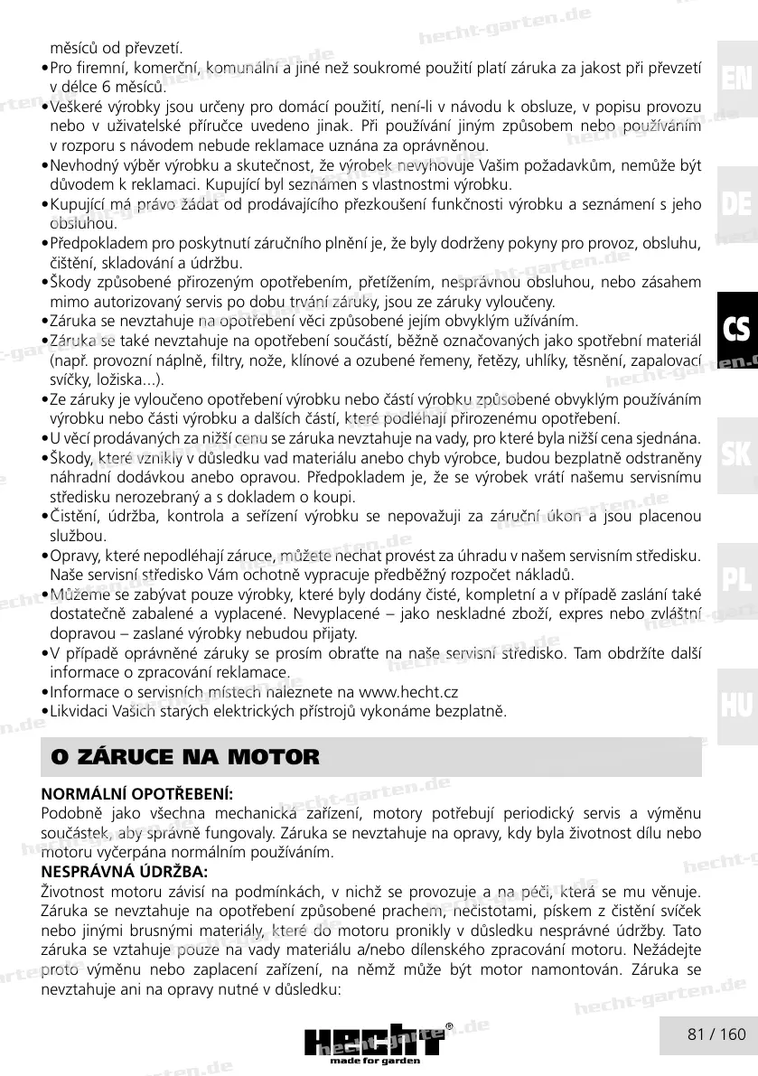 • Informace o servisních místech naleznete na www.hecht.cz
