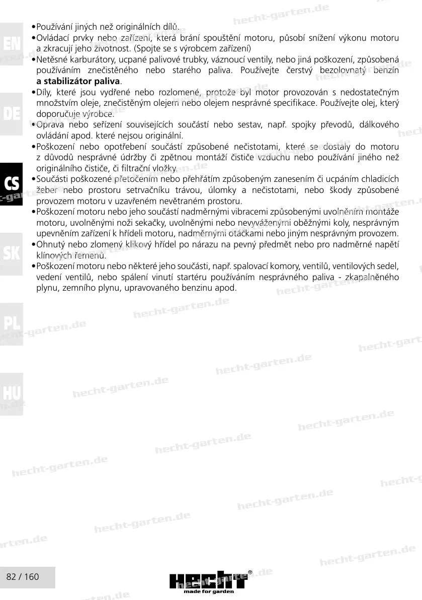 používáním znečistěného nebo starého paliva. Používejte čerstvý bezolovnatý benzín