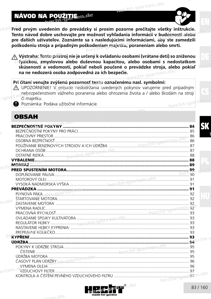 BEZPEČNOSTNÉ POKYNY ...................................................................................................... 84