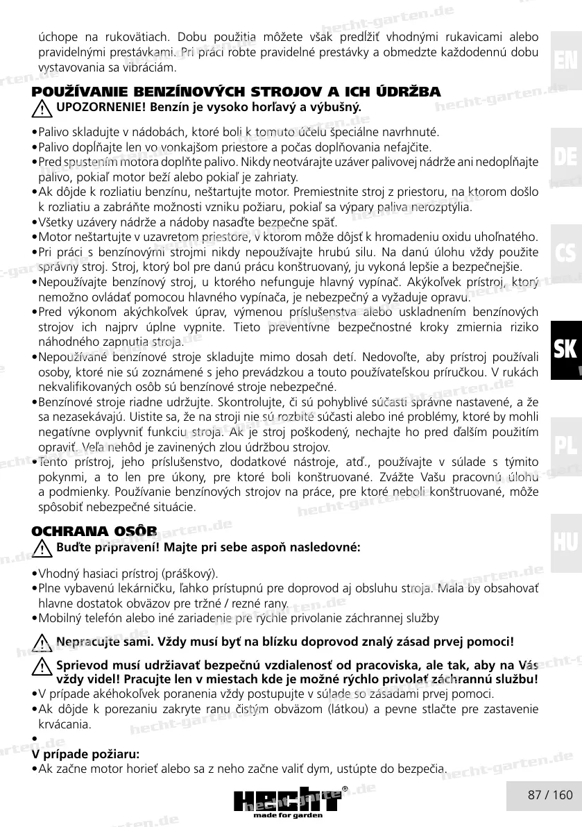 • Pri práci s benzínovými strojmi nikdy nepoužívajte hrubú silu. Na danú úlohu vždy použite