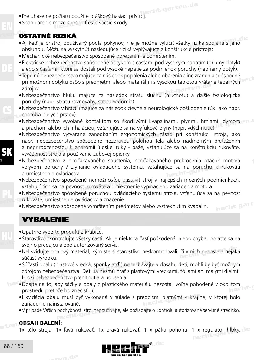 • Likvidácia obalu musí byť vykonaná v súlade s predpismi platnými v krajine, v ktorej bolo