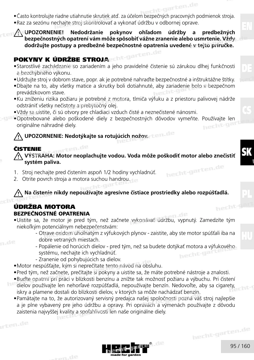 • Raz za sezónu nechajte stroj skontrolovať a vykonať údržbu v odbornej oprave.