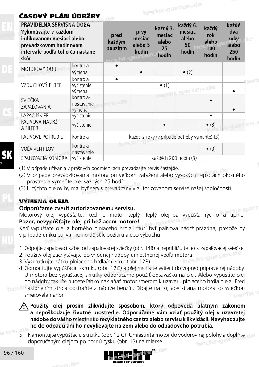 Použitý olej prosím zlikvidujte spôsobom, ktorý odpovedá platným zákonom