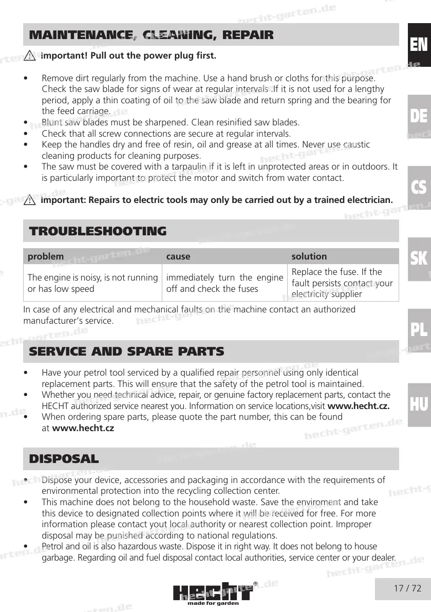HECHT authorized service nearest you. Information on service locations,visit www.hecht.cz.