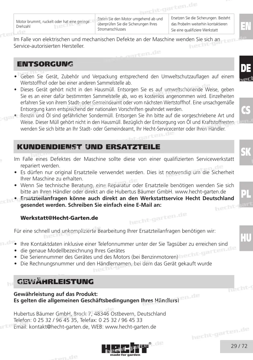 bitte an Ihren Händler oder direkt an die Hubertus Bäumer GmbH. www.hecht-garten.de