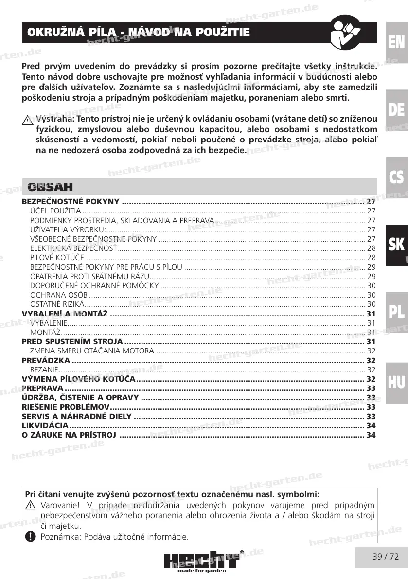 BEZPEČNOSTNÉ POKYNY PRE PRÁCU S PÍLOU .................................................................................... 29