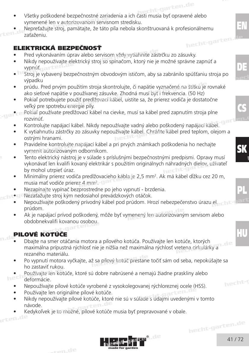 • Nepreťažujte stroj, pamätajte, že táto píla nebola skonštruovaná k profesionálnemu