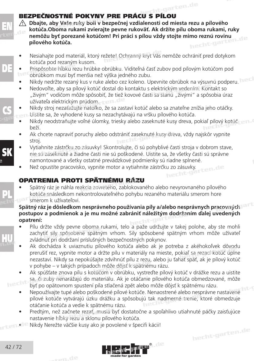 BEZPEČNOSTNÉ POKYNY PRE PRÁCU S PÍLOU