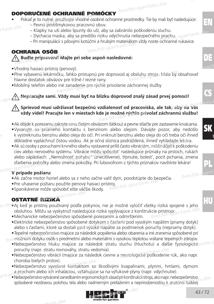 • Nebezpečenstvo vibrácií (majúce za následok cievne a neurologické poškodenie rúk, ako napr.