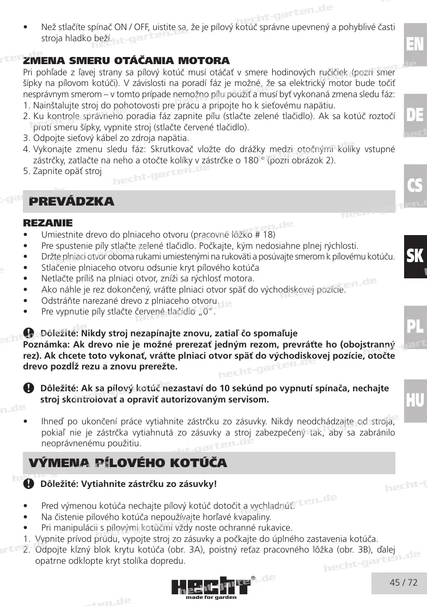 • Pri manipulácii s pílovými kotúčmi vždy noste ochranné rukavice.