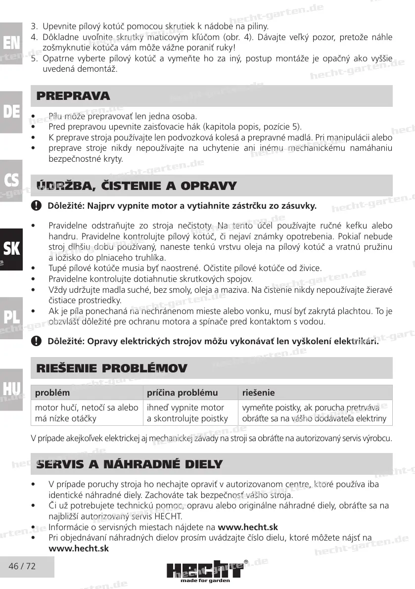 • Informácie o servisných miestach nájdete na www.hecht.sk