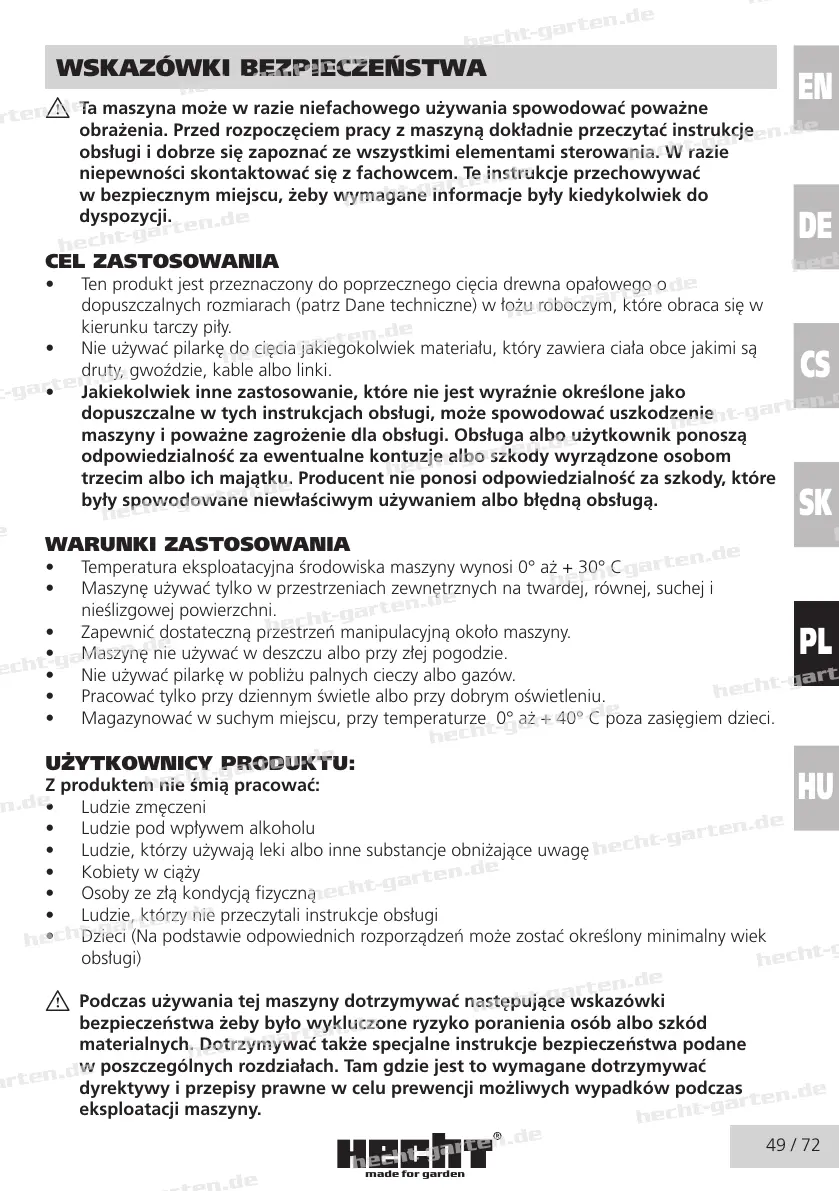 • Ten produkt jest przeznaczony do poprzecznego cięcia drewna opałowego o