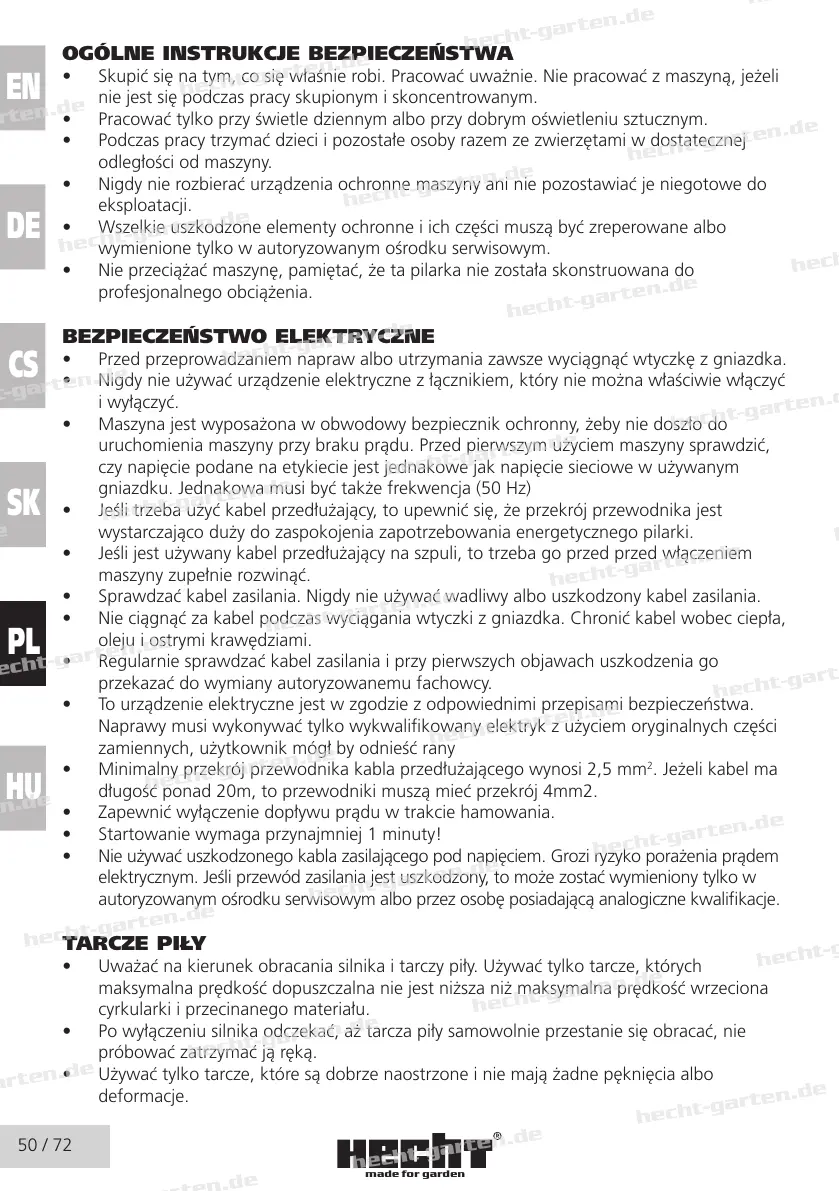 • Nie przeciążać maszynę, pamiętać, że ta pilarka nie została skonstruowana do