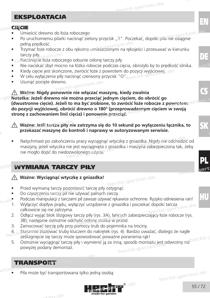 • Do czyszczenia tarczy pił nie używać palnych cieczy.