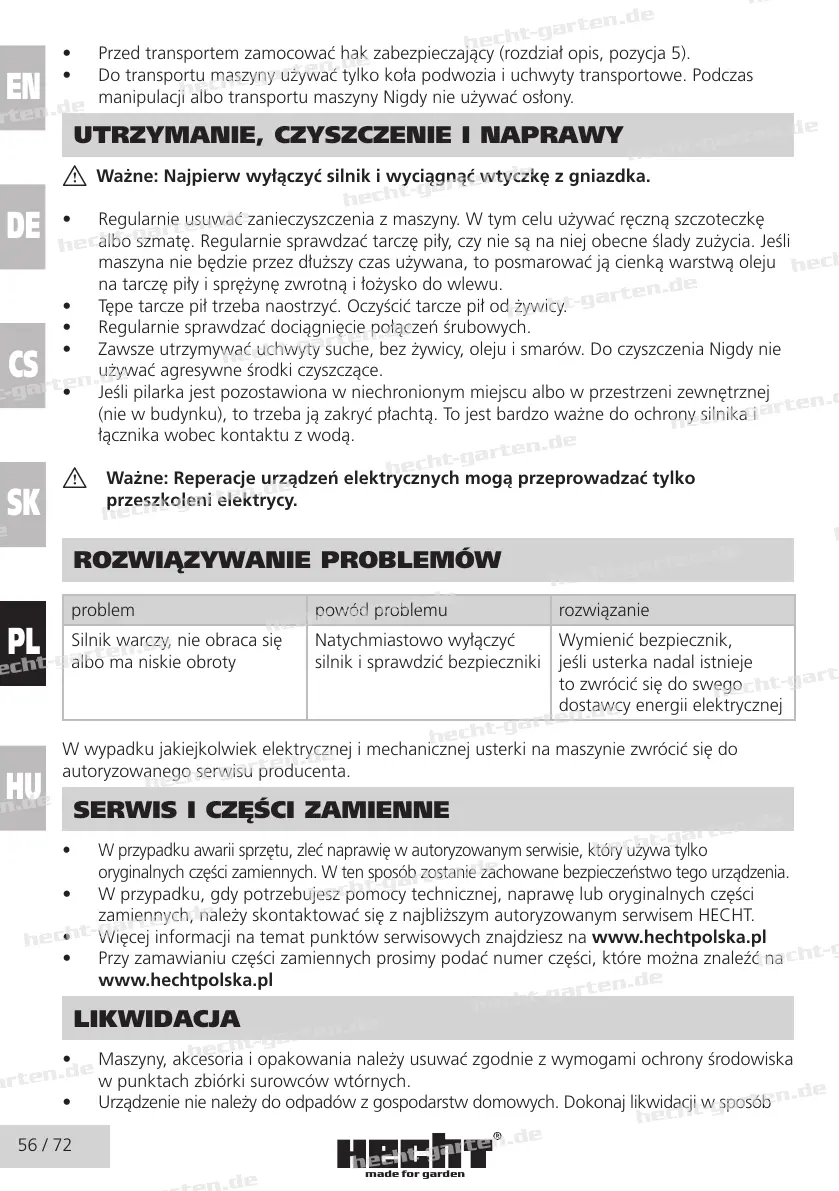 • Więcej informacji na temat punktów serwisowych znajdziesz na www.hechtpolska.pl