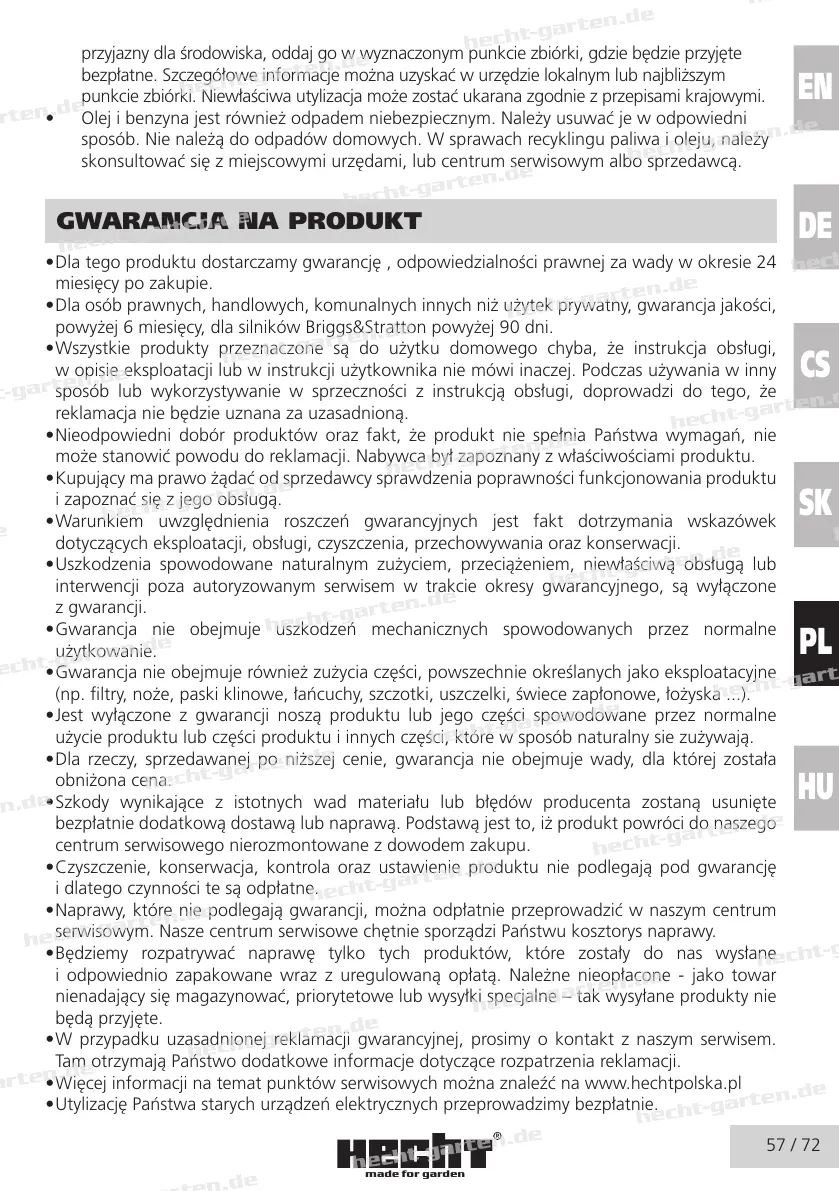 • Więcej informacji na temat punktów serwisowych można znaleźć na www.hechtpolska.pl