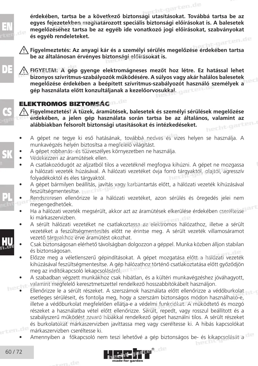 érdekében, a jelen gép használata során tartsa be az általános, valamint az