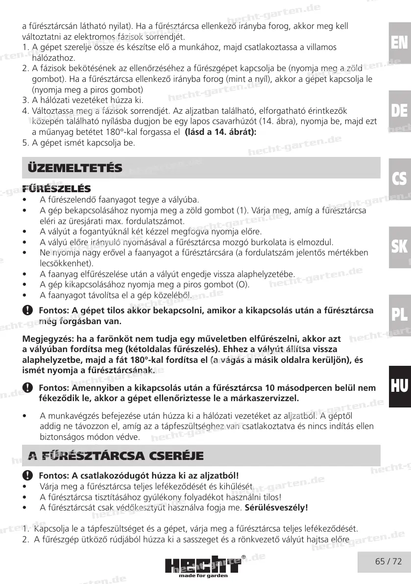 • A munkavégzés befejezése után húzza ki a hálózati vezetéket az aljzatból. A géptől