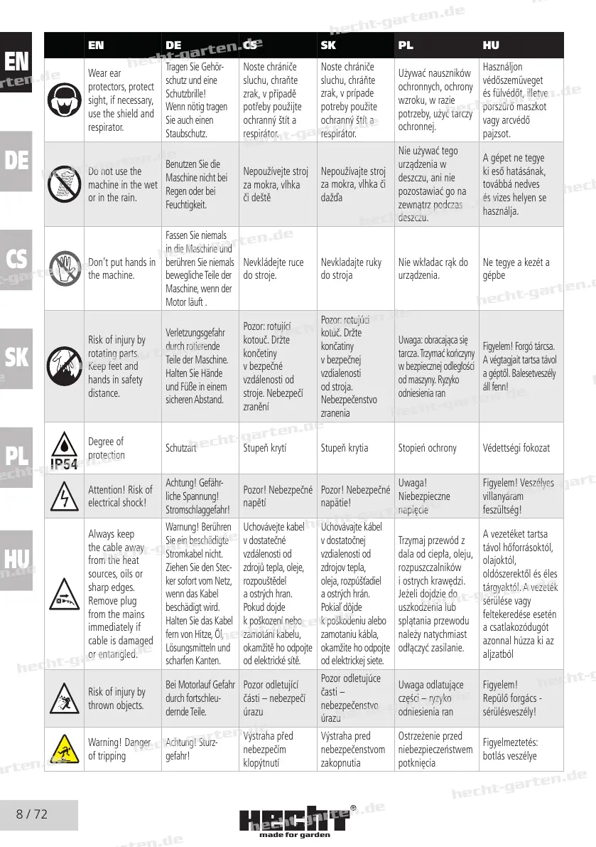 hecht 845 - General Safety Precautions; Personal Protective Equipment; Safe Operating Practices; Electrical and Cable Safety