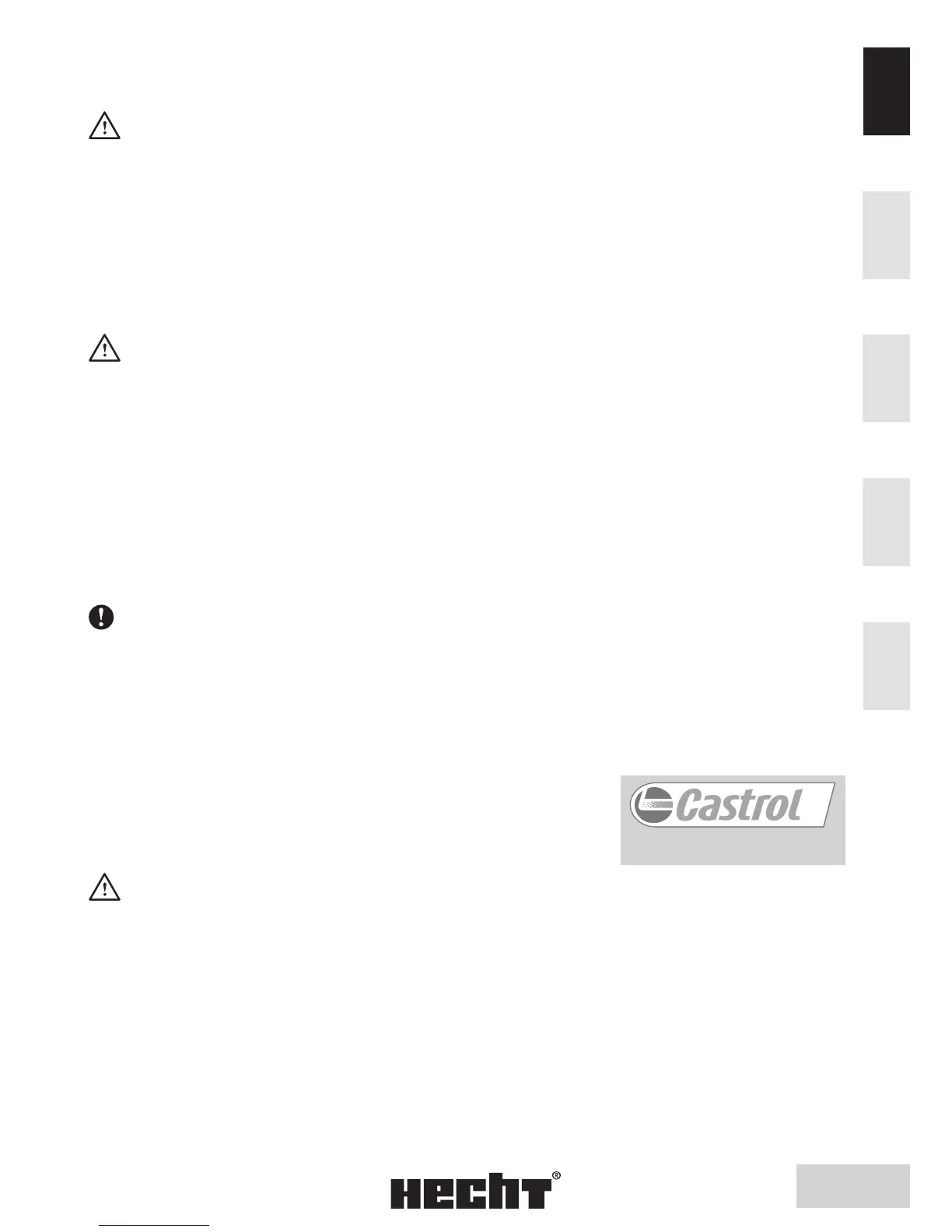 of the fuel tank or add petrol while the engine is running or when the engine is hot. If petrol is