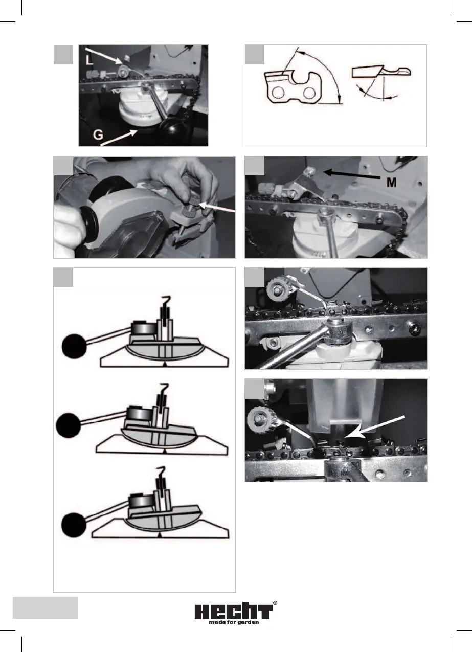 bruste nejprve všechny zuby v jednom směru, potom obraťte svorec ( pozor na úhel ) a bruste