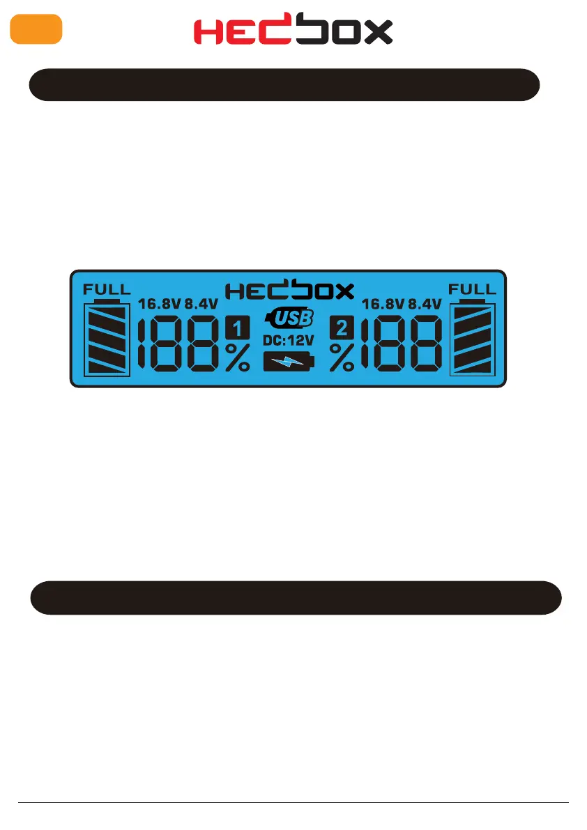 7. The charging process starts with a full display of the charging process and battery capacity.