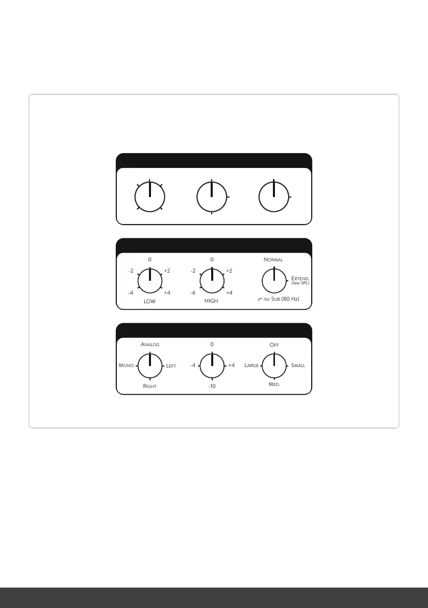 The output volume rotary switch changes the reproduction level in a ± 12 dB range. We