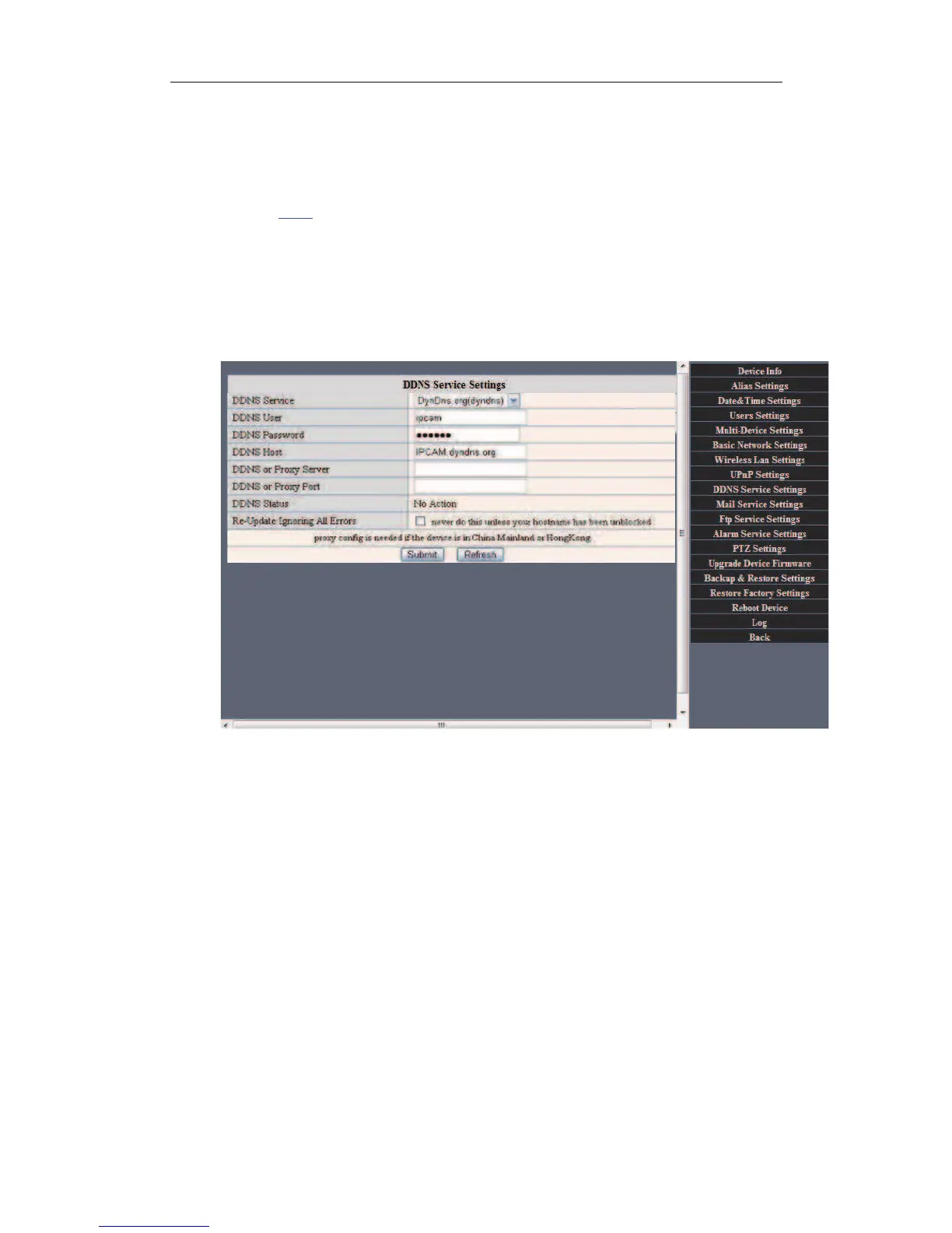 DDNS Service: The system supports protocols from some DDNS providers: Dyndns.org.
